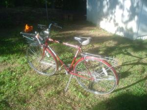 Фото наугад, возможно будет убрано. Но можно оставить. Это тоже трофейный изумительный велик SCHWINN QUALITY.На руле самодельный багажник, сзади большой багажник типа "Штаны" снят, видна только рама с одним чёрным барашком крепления. Это оч удобно. Багажник беру по мере необходимости.