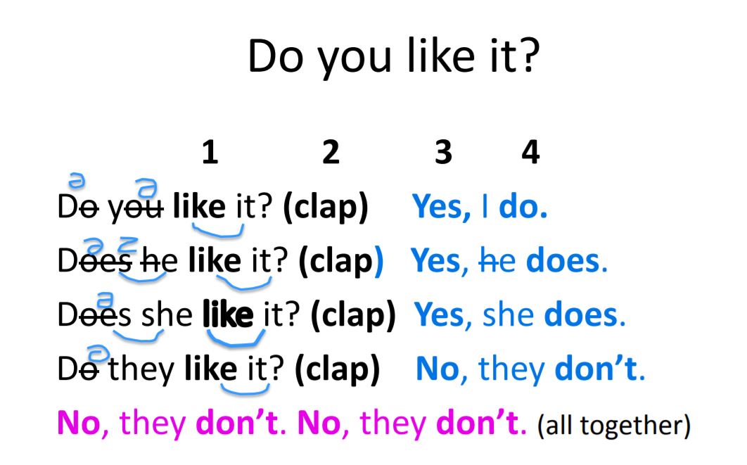 «В пении под джазовую музыку нет ничего ничего необычного, просто использование ритмичных куплетов помогает легче запомнить выражения в American English. Почему фокусирование на ударении, ритме и группировке слогов настолько полезно? Потому что для носителей английского языка ударение является смысловым ключом, и на нем необходимо сосредоточится. А мои Jazz Chants — это забавный и эффективный способ помочь ученикам начать замечать и воспроизводить естественный ритм и мелодику английского языка в повседневной беседе».
