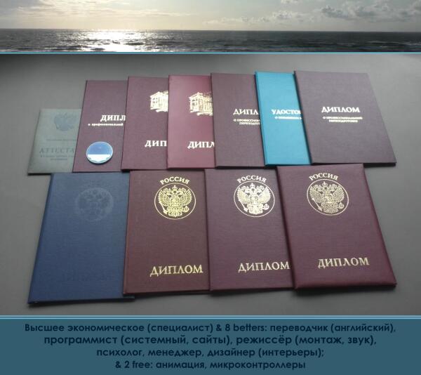 После окончания университета, работал более 10 лет программистом и успешно закончил четыре программы переподготовки на четырёх факультетах СПбГУ: программист, психолог, менеджер, переводчик (английский). А также получил два диплома в Политехническом университете Санкт-Петербурга по дизайну и программированию (сайты). А также получил два диплома режиссёра с отличием (монтаж, звук) в Институте кино и телевидения. Неоднократно проходил повышение квалификации в лучших вузах Санкт-Петербурга. Имею научные публикации в РИНЦ. Пробовал поступать в аспирантуру.