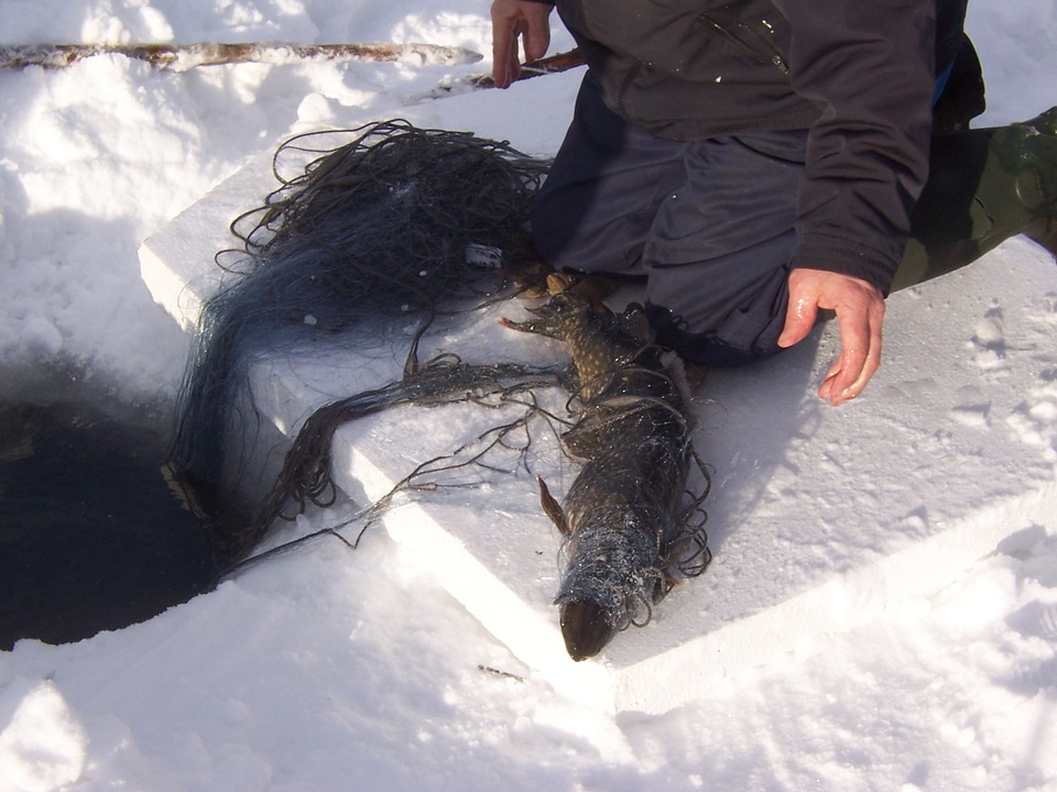 Какими снастями и способами ловить? На жерлицу, поставушки, отвесным блеснением, на спиннинг, спаренными спиннингами, на дорожки, поплавочную, проводочную удочку, донку, кружки, на перемет.