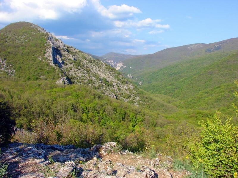 Здесь устраиваемся на ночлег, предварительно сходив за водой в расположенную рядом пещеру Партизанскую. Рядом со входом — памятник партизанам. Внутри пещера не особо интересна, но в ней есть ванночка с питьевой водой (рядом с лестницей). Если вечером есть время, можно сходить на гору Орлиный Залёт (час ходьбы по дороге в северном направлении), полюбоваться видами с Барской поляны и пещерой-гротом Данильча-Коба.