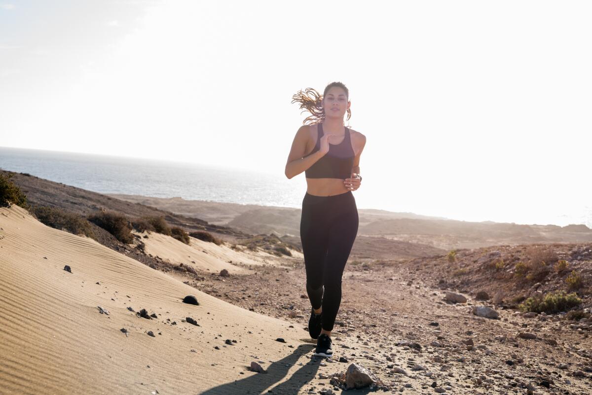На ногах кроссовки для марафона, тело одето в подходящую и легкую одежду.
