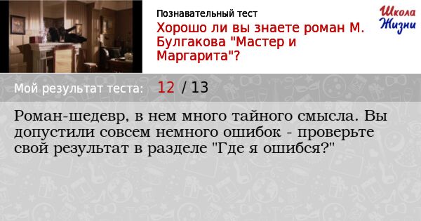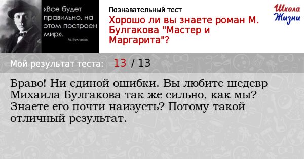 Литературный тест. Культовый роман Михаила Булгакова постоянно набирает популярность, он современен и бессмертен. Молодежь и умудренные опытом взрослые зачитываются мистическим произведением, а цитаты книги давно «ушли в народ».