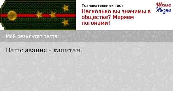 У меня звание капитан. Совпало в тестах. Но все равно это хрень, а не тест
