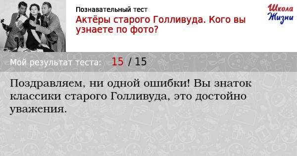 Тест на эрудицию о самых известных и любимых актёрах Голливуда середины XX века. «Крестный отец», «Касабланка», «Унесенные ветром» — вы наверняка если и не смотрели эти фильмы, то хоть немного наслышаны о них. Кого из актеров классики американского кино вы сможете узнать по фото и небольшому факту из биографии? Проверьте себя.