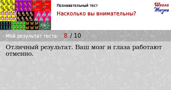 А внимание нуждается в постоянном совершенствовании. Даже такие небольшие тесты, когда человек концентрируется на выполнении заданий, способны заставить мозг работать более эффективно. Улучшается память. А также такой досуг — это отличная гимнастика для мышц глаз.