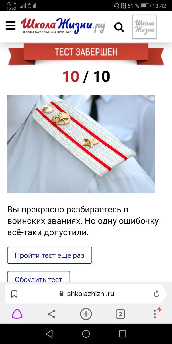 Тест проверяет ваше знание системы воинских званий в современной российской армии. Наверняка мужчины пройдут этот тест без труда, а вот прекрасному полу будет сложнее. Кроме, разумеется, жён офицеров или женщин-военнослужащих.
