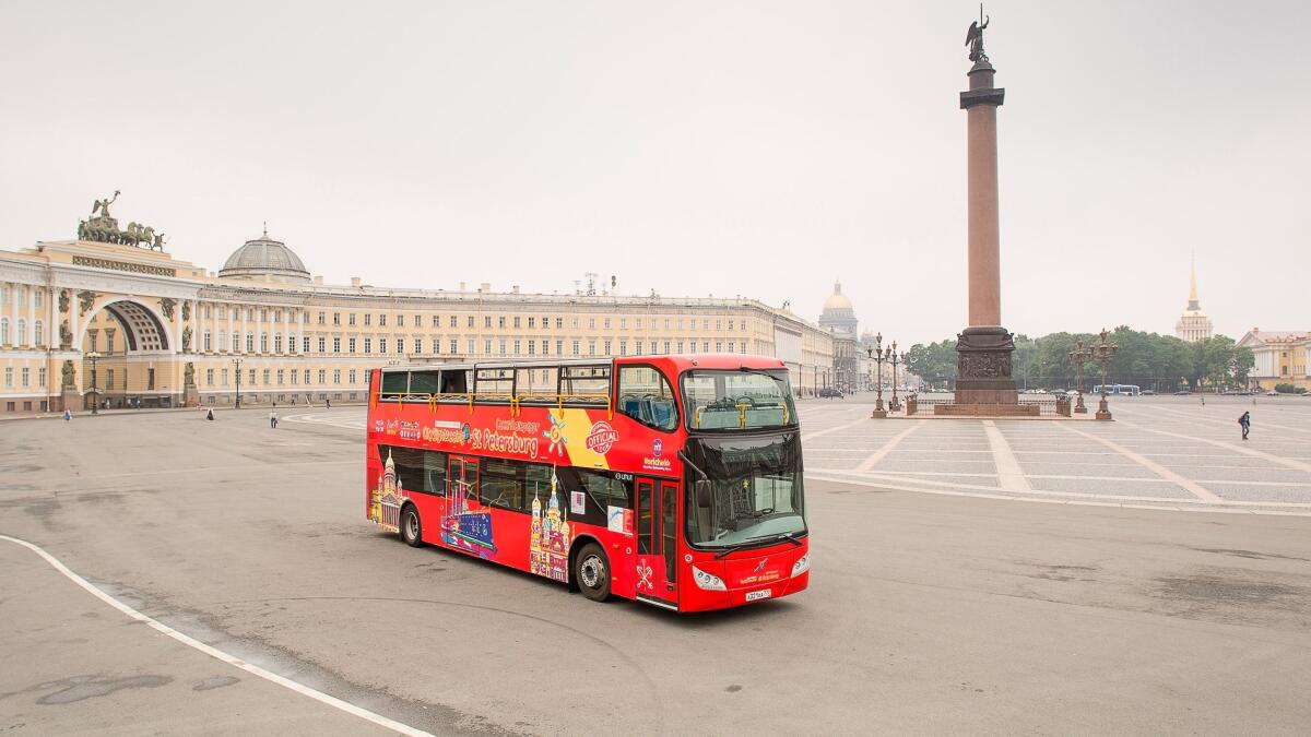 Двухэтажный автобус компании city-sightseeing.ru отвезет вас в увлекательное путешествие по Санкт-Петербургу, а экскурсоводы поведают об интересных фактах, легендах и мифах города.