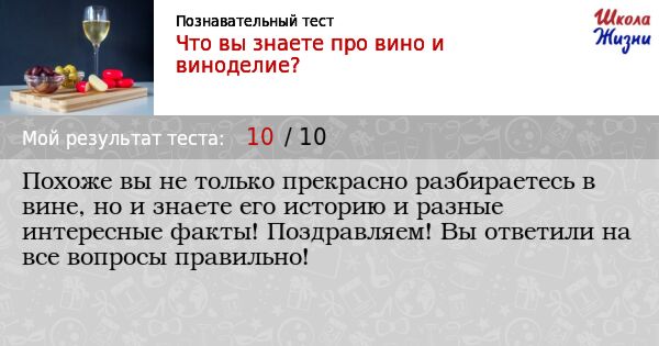 Вино — один из древнейших напитков издавна известный наряду с мёдом, квасом и пивом. История виноделия берет свое начало около 8000 лет до нашей эры. На протяжении веков сформировалась целая культура как изготовления, так и употребления этого напитка. Именно об этом наш тест! Сможете пройти?