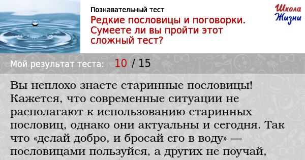 Старинные пословицы и поговорки обогащают язык, помогают установить связь между поколениями и вносят в наш быт бесценную мудрость, накопленную прошлыми поколениями. Есть поговорки, которые мы часто слышим в повседневной жизни, а есть и такие, что звучат совсем непривычно, но от этого не становятся менее актуальными. Напротив, многие из них можно запросто применить и к современным условиям, главное только выбрать правильное продолжение. Сумеете?