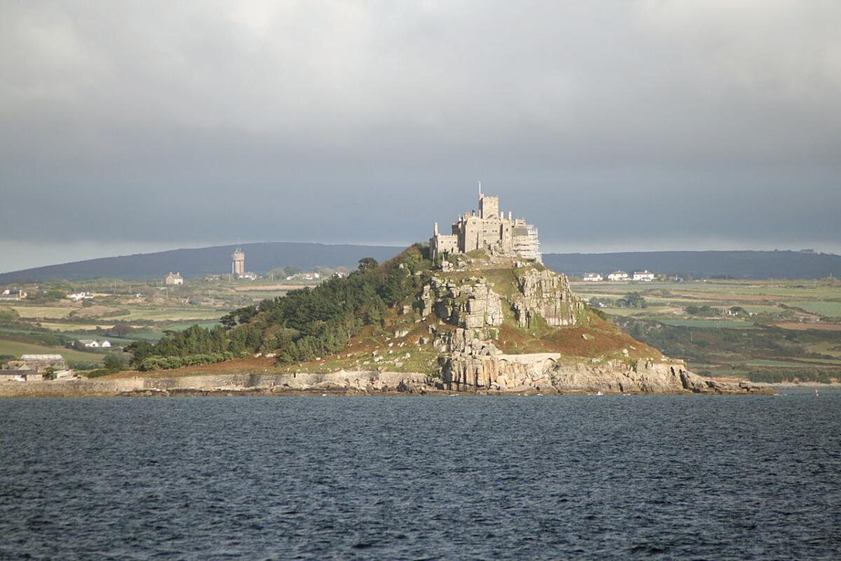 Историческое здание располагается на самой вершине острова, представляющего собой гору. Изначально здесь располагался монастырь. Перейти на остров с суши можно только во время отлива. В остальное время доступна переправа при помощи водного транспорта.