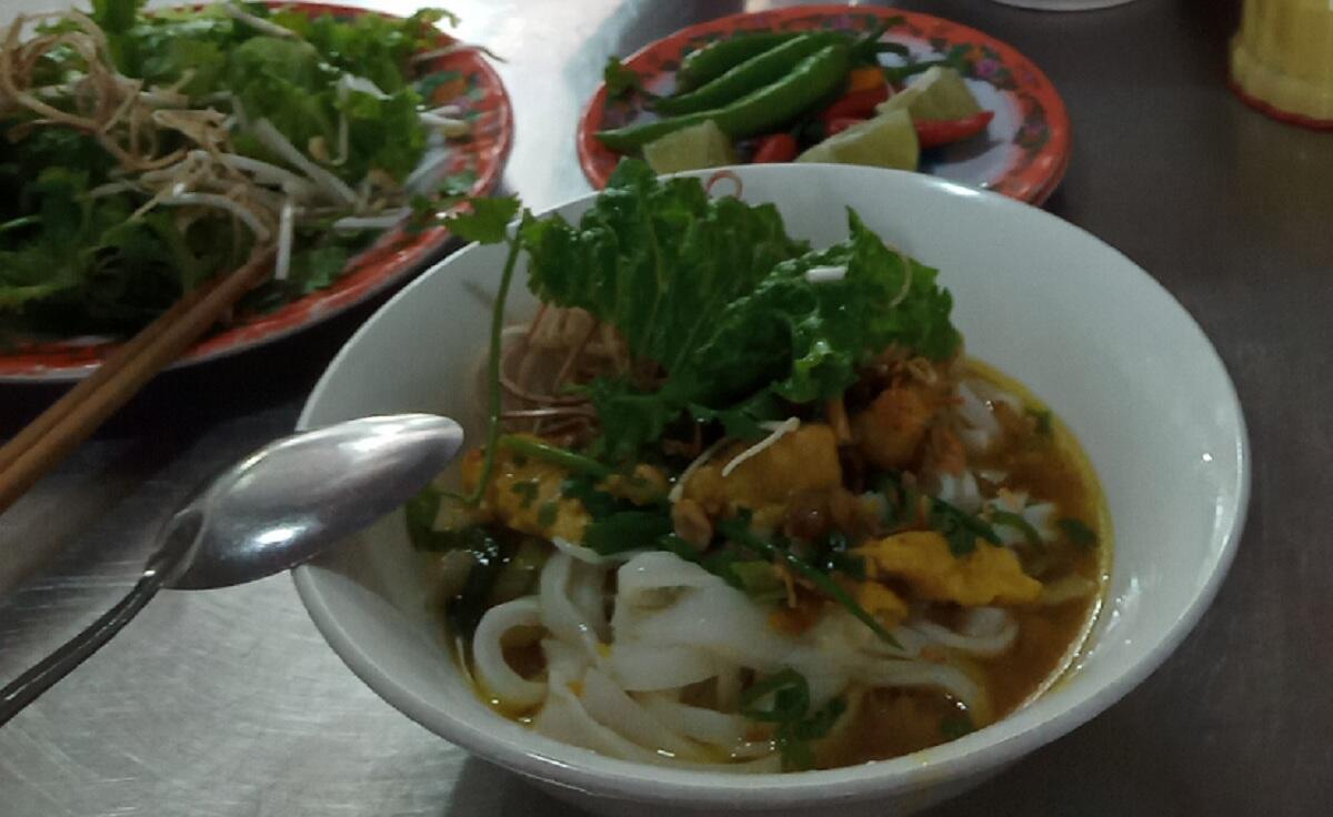 В первые дни нашего пребывания мы нашли небольшое кафе, которое полюбили с первого блюда! Это был традиционный вьетнамский суп-фо! Состав на вид простой: рисовая лапша — его обязательный компонент. (В моем советском детстве бабушка делала похожую домашнюю лапшу, но, разумеется, на пшеничной муке, не на рисовой.) Лапша с разнообразными овощами «плавает» в бульоне, а вариантов бульона — несколько: с куриным мясом, с мясом говядины и с морепродуктами. Правда, последний вариант мы не пробовали. Но первые два оценили на «пятерки»!