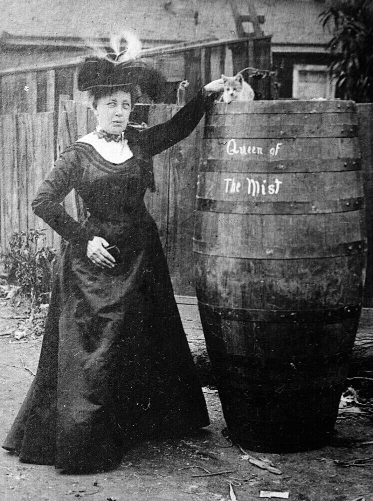 Понятно, что без защитных средств спуститься по водопаду очень сложно — высок риск разбиться о камни. Энни Эдсон Тэйлор придумала свой способ защиты — спуск в высокой и прочной деревянной бочке. Потеряв мужа на войне и оказавшись в затруднительном финансовом положении, эта смелая женщина решилась заработать на смертельно опасном трюке, чтобы больше привлечь к водопаду туристов.