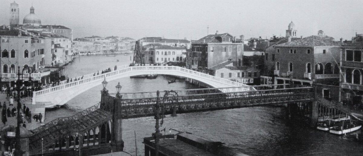 У мостов Венеции судьба всегда непростая. Тот мост, что существует сейчас, потомок другой конструкции. Её в 1858 году возвёл английский инженер Альфред Невилл. Тот самый, что за несколько лет до того создал оригинальный мост Академии.