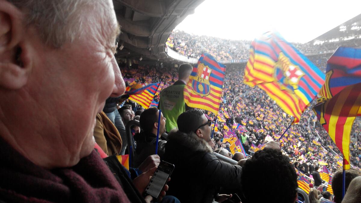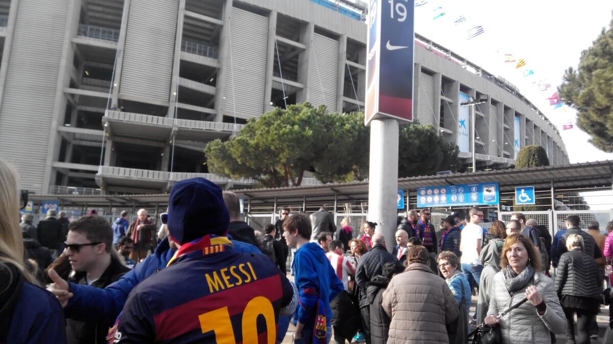 …По выходе из метро на станции Collblanc вся толпа понеслась в одном направлении, сметая друг друга. Почти у всех бегущих в руках были флажки «Барсы», шарфики, хлопушки и прочие атрибуты, без которых футбольный матч — не матч. Теперь ошибиться с направлением было трудно, но отстать от «своих» — легко, что я периодически и делала.