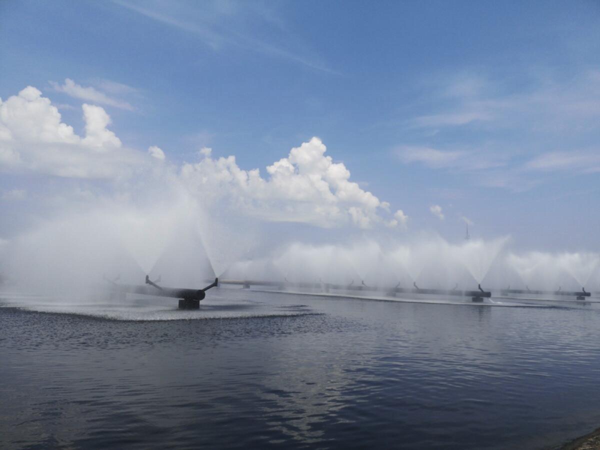 Температура воды при выходе из сопел превышает 40 градусов по Цельсию. В процессе распыления вода отдает свое тепло воздуху и вытекает из бассейнов в пруд-охладитель. Далее охлаждается и снова поступает на ТЭЦ для охлаждения технических узлов и агрегатов.