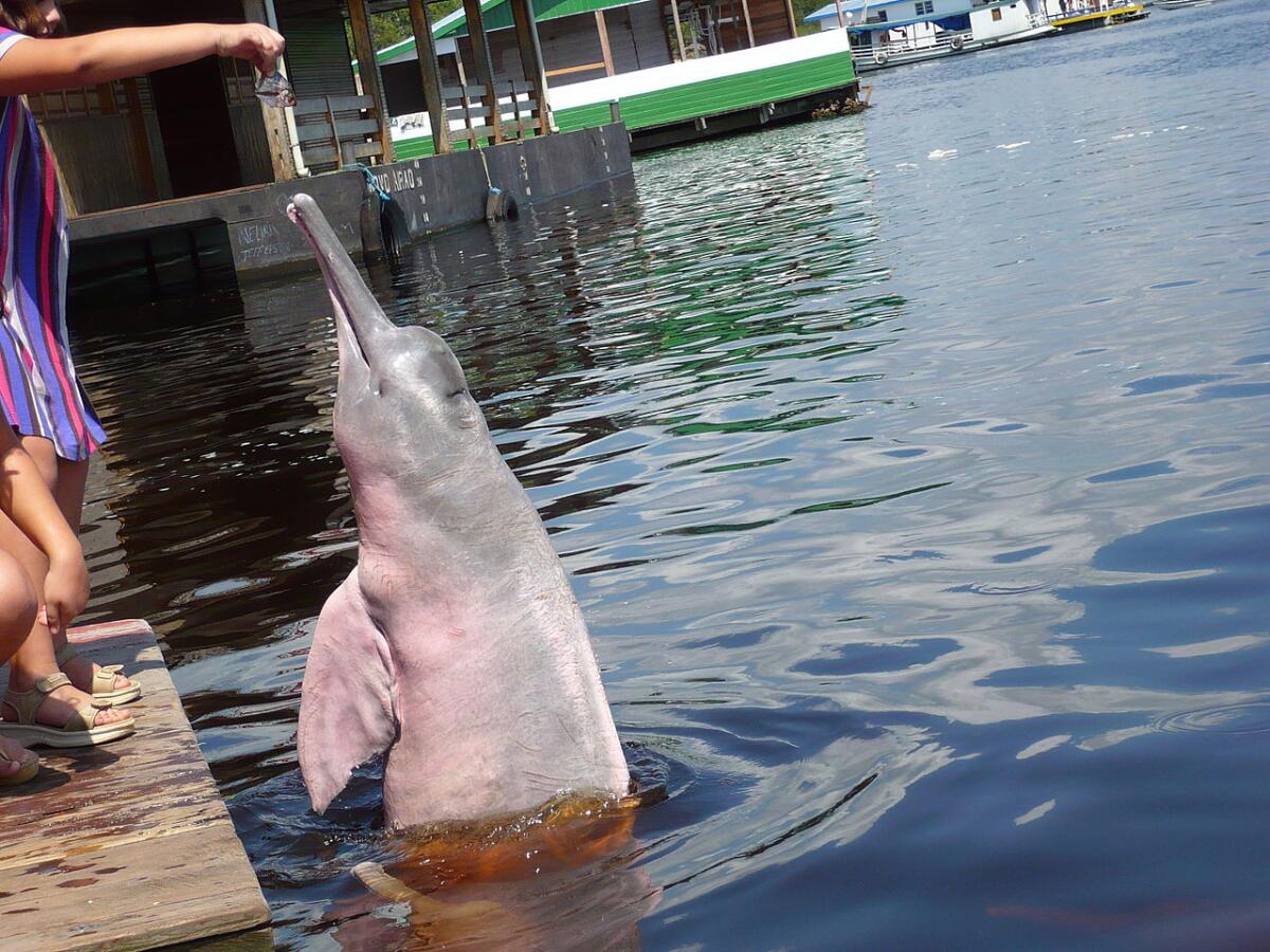 Пресноводный дельфин иния издает тонкие звуки, которые отражаются от предметов, находящихся в воде, и с помощью эхолокации ориентируется в условиях плохой видимости.