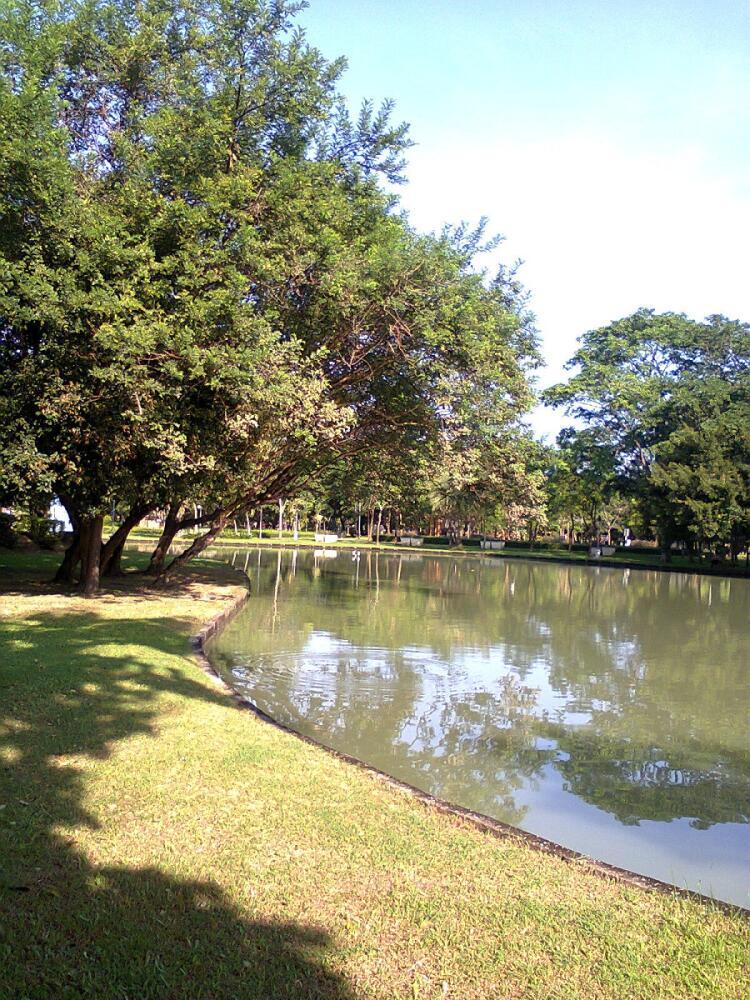 Муж купил кепку от солнца, голову тут лучше держать закрытой. А на кепке-то латиницей написано «sawadee». Забавный случай однажды вышел с этой кепкой. Гуляли мы около парка, красивый парк, озеро там, дорожки и лавочки — все очень культурно, с удовольствием туда ходим.