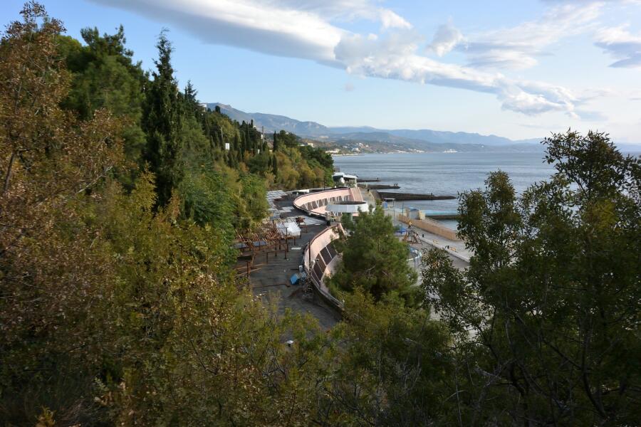 Солнечногорское находится в 60 км от Ялты. Это первый населенный пункт от Ялты, где можно свободно подъехать к морю. От города поедете по серпантину, что само по себе красиво.