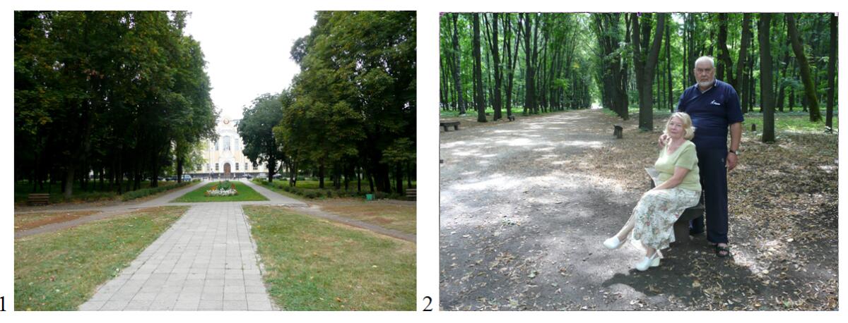 Стройные тенистые аллеи парка расходились лучами от большой круглой площадки на входе в парк с северной стороны главного корпуса СХИ. По центру площадки построили фонтан, который действовал до начала Второй мировой войны. Я застал только его развалины. По внешнему виду он был гораздо скромнее проектного, без каскада, но его размещение подчинялось логистике первичного проекта и хорошо организовывало пространство. От ворот шла центральная аллея до входа в институт. Студенты и жители района назвали её Аллеей любви.