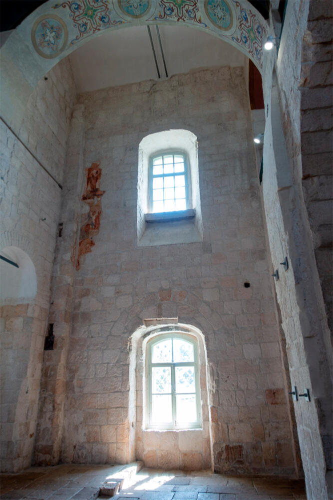 На южной стене просматривается часть композиции «Поклонение Волхвов» фигуры скачущих на лошадях всадников: