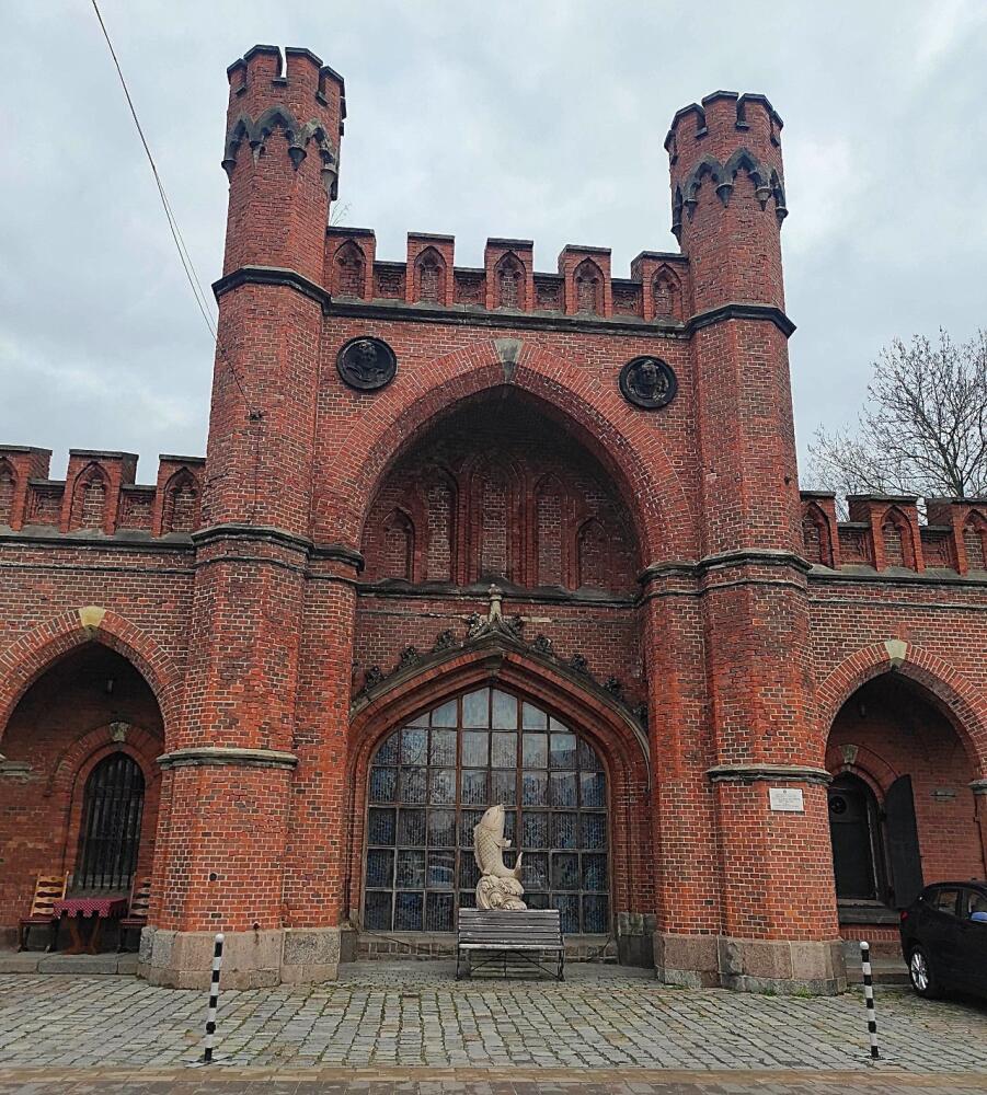 Перейдя через дорогу от Мемориала героям штурма Кёнигсберга и памятника маршалу Василевскому, подходим к одной из визитных карточек Калининграда — краснокирпичным, представительным Росгартенским воротам. Одноимённые деревянные ворота были построены в начале XVII века и относились к первому вальному укреплению, предназначенному для защиты города.