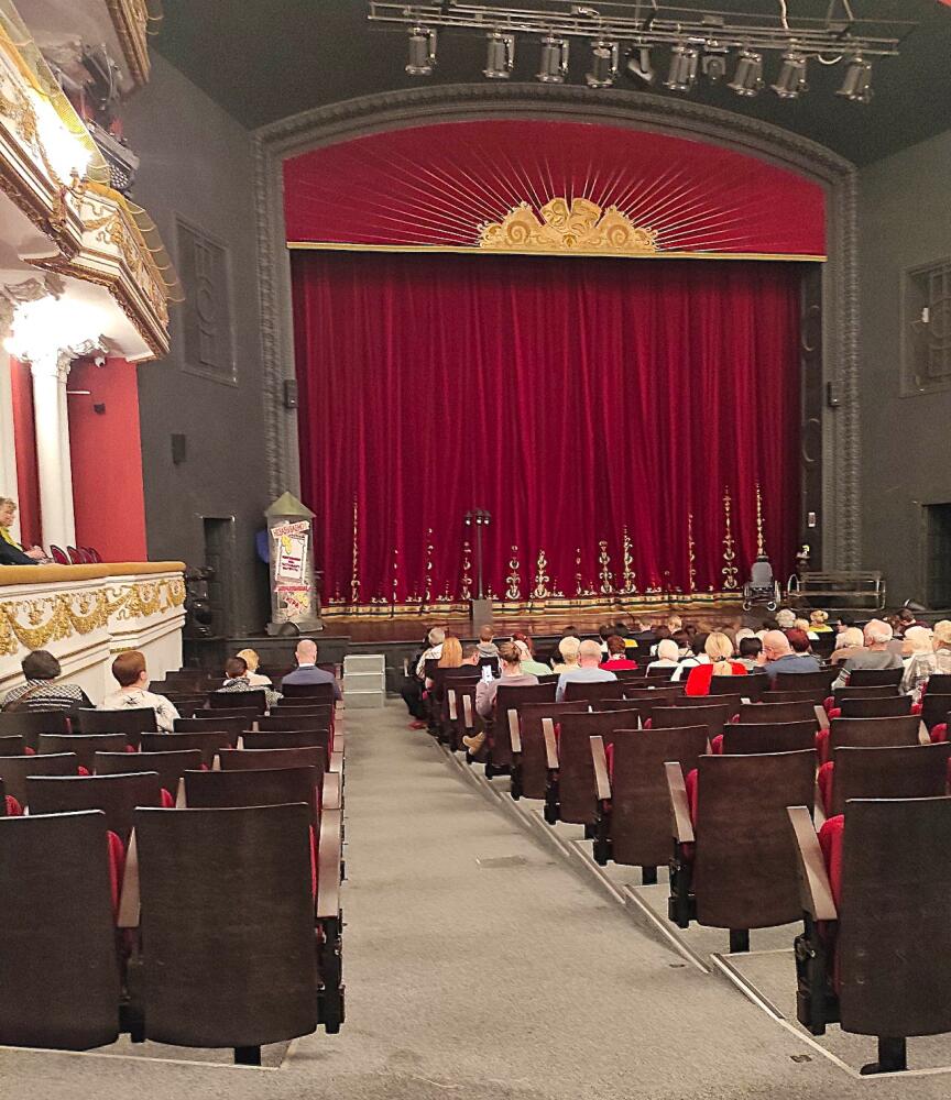 Наши места были во втором ряду амфитеатра, очень удобные. Кстати, билеты недорогие — от 500 до 1000 рублей. За такие цены, при возможности, с удовольствием посмотрела бы все спектакли театра. Увы, нам удалось побывать только на двух.