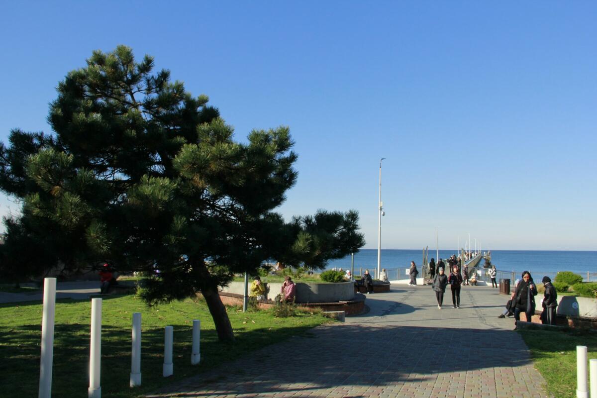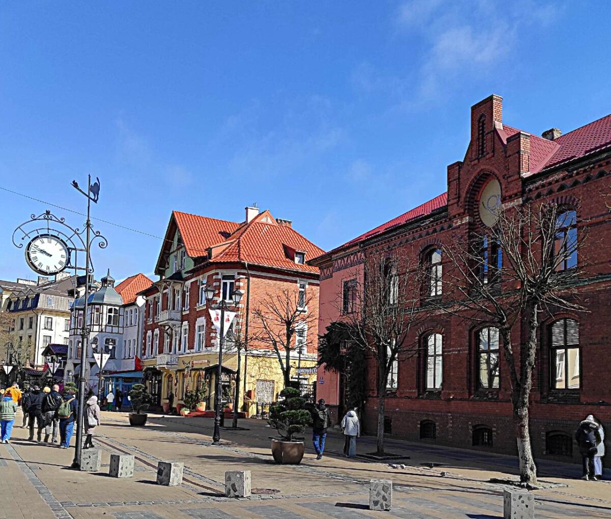 Пройдя чуть вперед от «Виллы Крелля», экскурсия продолжилась на Курортном проспекте, в исторической части города. Сейчас это пешеходная улица, сохранившая дух старинного Кранца. Как во времена Восточной Пруссии, проезжая часть и тротуар проспекта выложены брусчаткой из камня, на крышах домов — красная черепица. Большинство хорошо сохранившихся довоенных зданий отреставрированы. На первых этажах размещаются кафе и сувенирные магазинчики, стилизованные под старину.