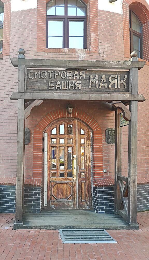 Одно из самых узнаваемых зданий не только первой очереди, но и комплекса в целом — башня «Маяк», копия типичной старинной навигационной башни. Функцию маяка она никогда не выполняла. Ее высота 33 метра, наверху — смотровая площадка со скульптурами «Учёный кот» и «Птица с яйцом». У последней, по сложившейся традиции, нужно оставить монетку и потереть скорлупу — «на удачу».
