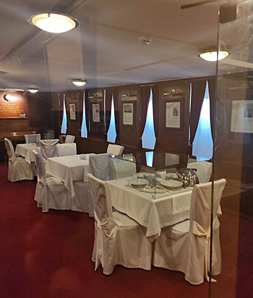 Воссоздана обстановка камбуза, где готовилась пища для экипажа корабля. В экспозиции все выглядит очень натурально, как будто кок только что покинул это помещение. В буфетной еду раскладывали на порции и после этого выносили в салон, где находилась столовая. Столы застилались белоснежными накрахмаленными скатертями, а на буфете у зеркала лежали подносы с хлебом. Во время шторма у столов поднимались специальные бортики.