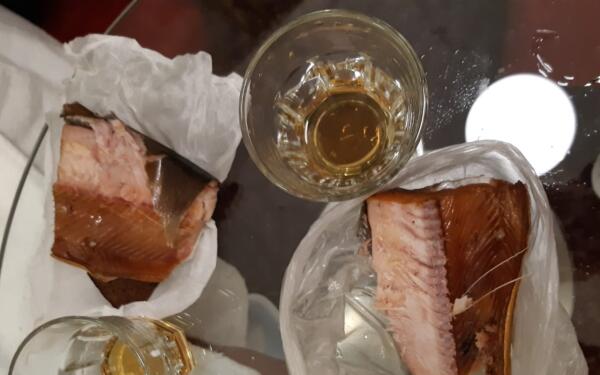 Рыбу, пусть и копчёную- с коньяком?...