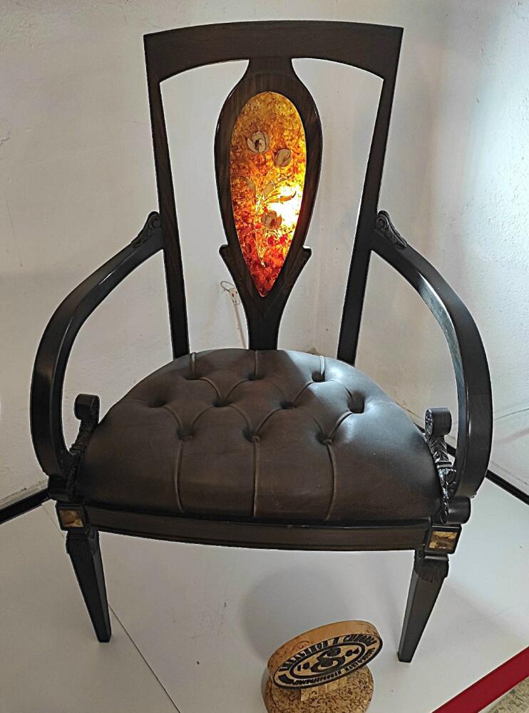 В художественной коллекции музея представлено огромное количество оригинальных, изящных, завораживающих предметов, от многих из которых просто невозможно отвести свой взгляд. Это и янтарная ваза с резным узором, создающим эффект спирали; и инкрустированный янтарем стол; и кресло из мореного дуба с янтарной вставкой на спинке.