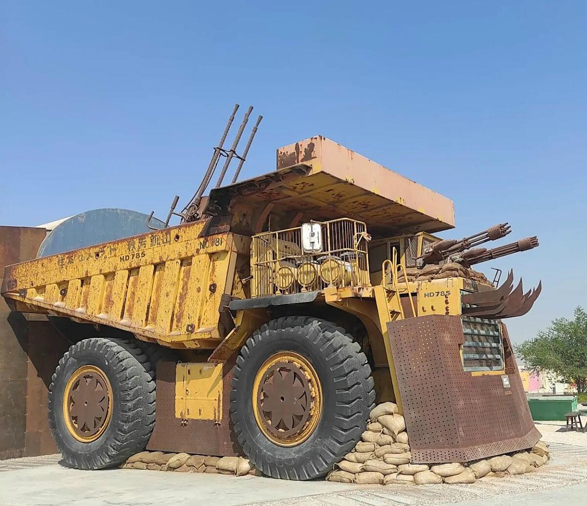 На выезде из Дубая, на шоссе Шейха Заида, остановились в одном «вдохновляющем» месте — в парке-музее «Последний выход». Вся территория и экспонаты этого довольно необычного арт-объекта оформлены в виде пейзажей из фильмов о Безумном Максе. Не удивительно, что у всей группы было такое ощущение, что мы находимся на съемочной площадке фантастического фильма.