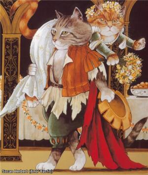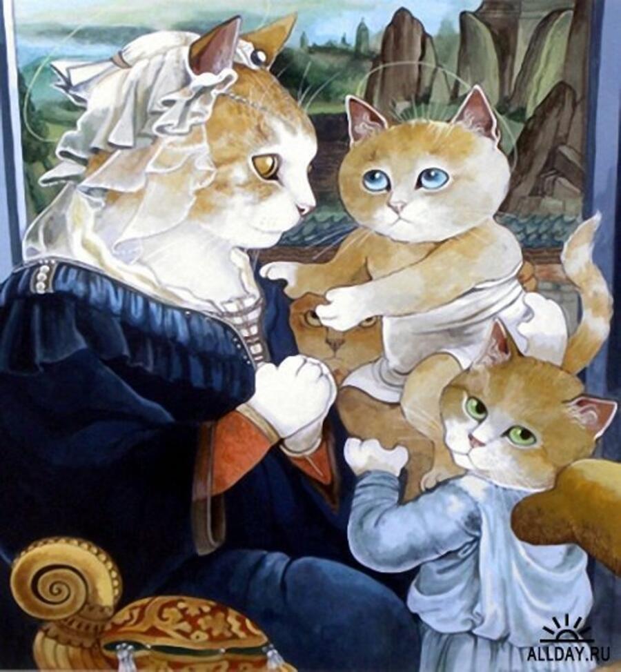 Я только хотела сказать, что есть такой жанр даже, вставлять в картины известных художников кошачьи мордочки, Кранах, Веласкес, Гольбейн..., и что я все порываюсь начать собирать, но никак руки не доходят.