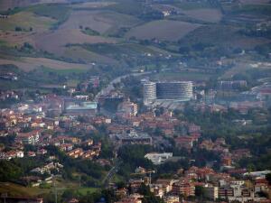с 28 апреля по 11 мая. Хошешь байку о карликах? В Италии каждая девушка мечтает выйди замуж за гражданина Сан Марино. Гражданство там только наследственное или через брак после 15 лет совместного проживания. Вот где рай на земле-то. Налоги у них пустяковые, уровень жизни высочайший, народ счастливый аж до идиотского выражения лица. Такое впечатление, что они все не работают - днем все закрыто, сиесты какие-то резиновые. В воскресенье тоже все закрыто. Жизнь начинается на улицах после где-то 10 вечера и до утра. Вроде бы и итальянцы, но какие-то совсем не итальянские, а как приведения итальянцев. Может, горный воздух так на них действует. И странный эффект: когда выезжаешь из карлика и спускаешься на национальную скоростную трассу карлик этот на горе пропадает из виду, гора окутывается какой-то пеленой дымчатой как город-призрак. И вообще с этими карликами перемудрено все очень. При всеобщей глобализации их видать чисто для стратегических целей терпят как будущих посредников-медиаторов на случай военного конфликта. Иначе зачем столько испанской крови пролито было из-за скалы гибралтарской и Британия все же осталась сидеть на своей скалушке. Глядишь, Березовский горку-то откупит. Вот тебе видок Светлейшего государства Сан Марино. Чепуховина - и 30 тысяч населения нет, а поди ка.