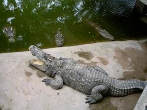 За двадцать лет из маленького невесомого детеныша вырастает стокилограммовый гигант. Таиланд славится крокодилами супер-величины, агрессивными и способными жить в соленой воде. Этот вид называется сиамским гибридом. Самый огромный крокодил по кличке Йай вымахал в длину более шести метров. Его шкуру не пустили на модные байкерские сапоги лишь потому, что он вовремя попал в книгу рекордов Гиннесса (как самый большой из живущих в неволе) и превратился в местную знаменитость.