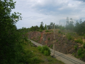 Коридор в скалах, по которому проходит железная дорога Выборг-Хельсинки.