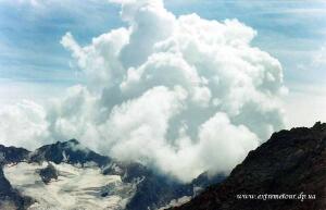 Если не ошибаюсь, на картинке какой-то из ледников горы Чугуш. А к этой статье будут фотографии самих дольменов и того самого треугольного камня с "солнышком". Просто у меня тогда еще цифрового фотоаппарата не было, надо найти альбом с дольменами и отсканировать штук пять
