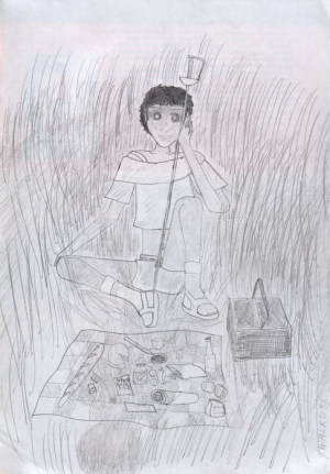 А вот эта девочка дружит со своей шпагой, унаследованной о предков. Только для неё и находит нежные слова, а хороший парнишка за ней ходит, только не решается заговорить - так она и не замечает его. А в итоге, когда у неё украли шпагу, он ей помог.