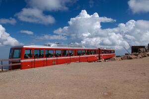 1. Можно поехать на поезде. Здесь уже более ста лет, с 1891 года, работает самая высокогорная железная дорога в США, комфортная и безопасная для пассажиров — Pikes Peak Cog Railway. Кстати, до открытия в 2007 году самой высокогорной в мире железной дороги в Китае, Цинхай-Тибетской (высшая точка которой 5072 метра), дорога на Пайкс Пик была вне конкуренции. В день делают три рейса, продолжительность поездки туда и обратно четыре часа, стоимость 30 долларов с человека. По пути делают две коротких остановки, и в конечном пункте, на вершине Пика, у дома встреч — Pikes Peak Summit House, дается полчаса для фотографирования и осмотра.