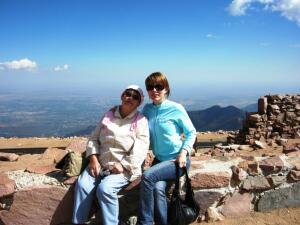 Там большой магазин с сувенирами, памятными футболками и кафе. В кафе получаем пончики и берем горячий кофе. На вершине, у края горы, есть памятная тумба — на ней длинный текст, восхваляющий Америку — «Америка прекрасна!». На крутом склоне метеостанция. А по самому краю горы идут рельсы железной дороги. Необычно то, что между обычными рельсами еще один — зубчатая передача, благодаря которой поезд и поднимается на такую большую высоту. Делаем множество разных снимков, короткий отдых, и отправляемся в обратный путь. Если дорога вверх заняла у нас более двух часов, то обратно мы за полтора часа (первые 6 миль спускались очень осторожно, со скоростью не более 10 миль в час) оказались уже в Манитоу. А нас ещё ожидал «Сад Богов».