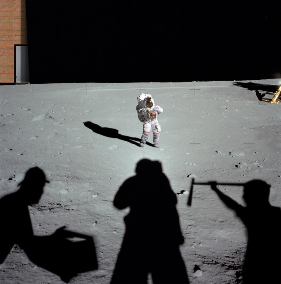В качестве аргументов «сеанса с разоблачениями» обычно приводится факт: на кадрах, где космонавт прыгает по Луне и ставит флаг, в небе не видны звезды, а тени на поверхности Луны — неровные. Отсюда делается слонобойный вывод: снимали в павильоне.