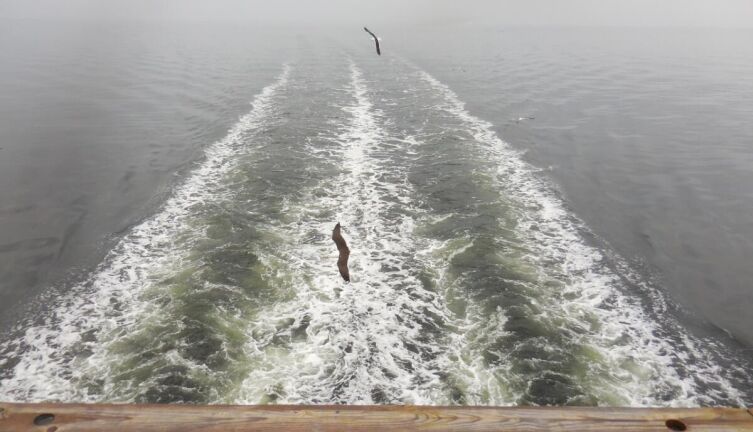 Зыбь небольшая, тучи, чуть ли не гребешки волн краем сизым цепляют, и, плывущие острова оторвавшихся ото дна водорослей, — то справа, то слева по борту…