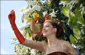 Главные герои Карнавала колесят по улицам города каждый день. А восхищённая публика — зрители и артисты — все участники карнавального шествия, восторженно встречают их «Парадом» и «Битвой Цветов». Изобильно декорированные свежими цветами, нарядные платформы (всего около двадцати), с которых очаровательные девушки и симпатичные юноши в экстравагантных костюмах и фантазийных шляпах изящно бросают в толпу пригоршни конфетти и букеты цветов, движутся пышной красочной процессией.