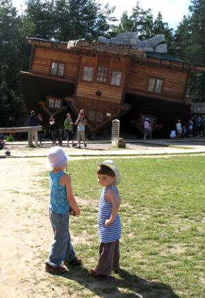 А интересно, вот детям было удивительно? Или в их детском воображении всё вполне укладывается: ну, подумаешь - дом к верху ногами!" А?