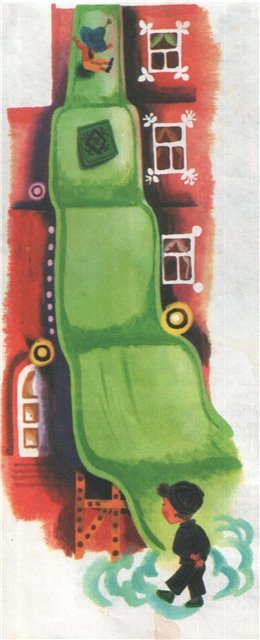 • В Солнечном городе есть ступенчатые дома, где вместо лифтОв горки, по которым съезжают на ковриках.
