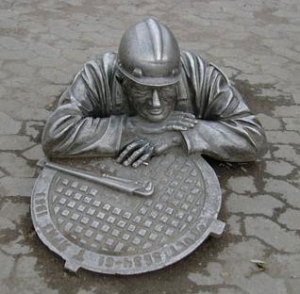 Красноярск прославился памятником дяде Яше и его стажеру. Скульптурная группа — это пожилой слесарь, выглядывающий из люка, и склонившийся над ним стажер. Памятник установлен у здания местного водоканала.