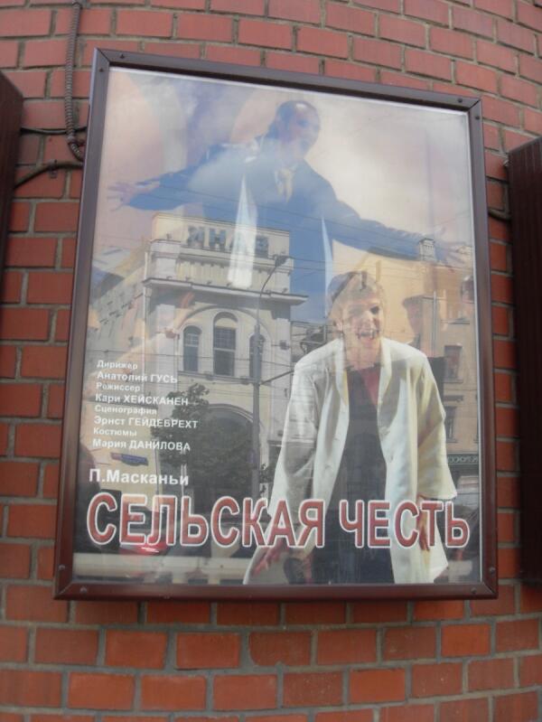 А здесь фотография афиши оперы Масканьи (московский театр Новая Опера). Видно, что герои играют в современных костюмах, и это не просто дань моде.