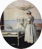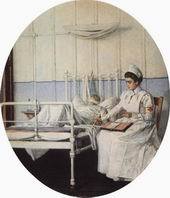 В картине легендарного русского художника В. В. Верещагина (1842−1904) «Письмо на Родину (Письмо матери)» (1901 г.) — обстановка совсем иная. Тяжело раненный воин диктует медицинской сестре письмо. Видно, что ему даже говорить трудно, и понятно, что он прощается. Эта весточка обрадует родных — жив! И встревожит их — ранен!