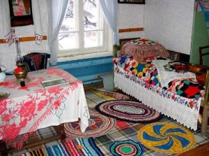 За маленькими оконцами — кромешный мрак зимней ночи, а в избе — топится печь. Она — центр всего, русское выражение «танцевать от печки» имеет такое же значение и для финнов. Большую часть помещения занимает именно она, печь. Массивный печной столб и отходящие от него под прямым углом друг к другу полки — главные «сооружения» в финской тупе. На полках выстроились в ряд берестяные туеса, короба, плетенки для ложек, солонки, только что сплетенные лапти.